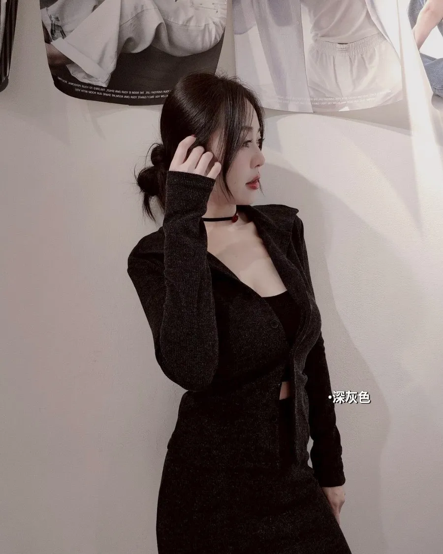 立領開扣魚尾套裝
